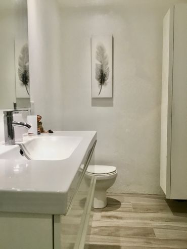 - salon-cuisine incluant ameublement cuisine (armoires et portes IKEA ) tel que le plan.